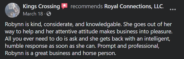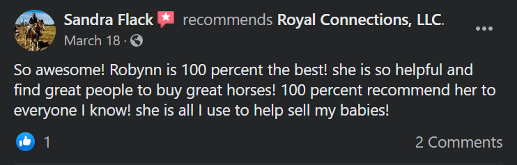 I am constantly connecting buyers and sellers on social media and promoting all of my current horses!
