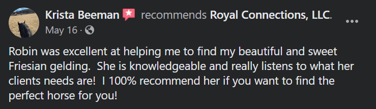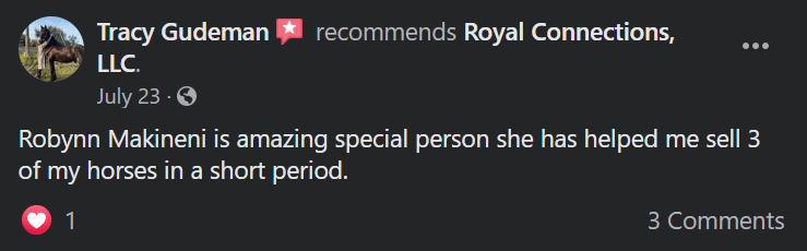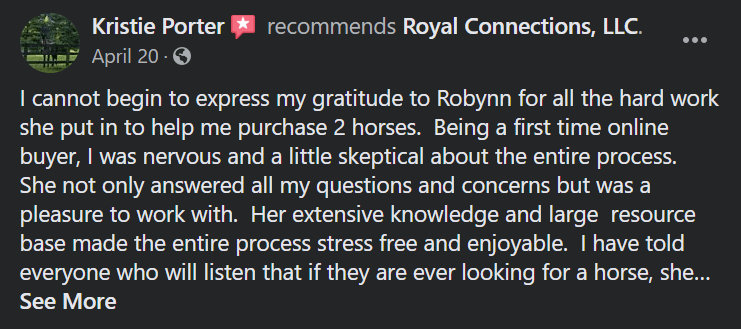 Many horses sell before ever they are ever listed to my database of interested buyers!