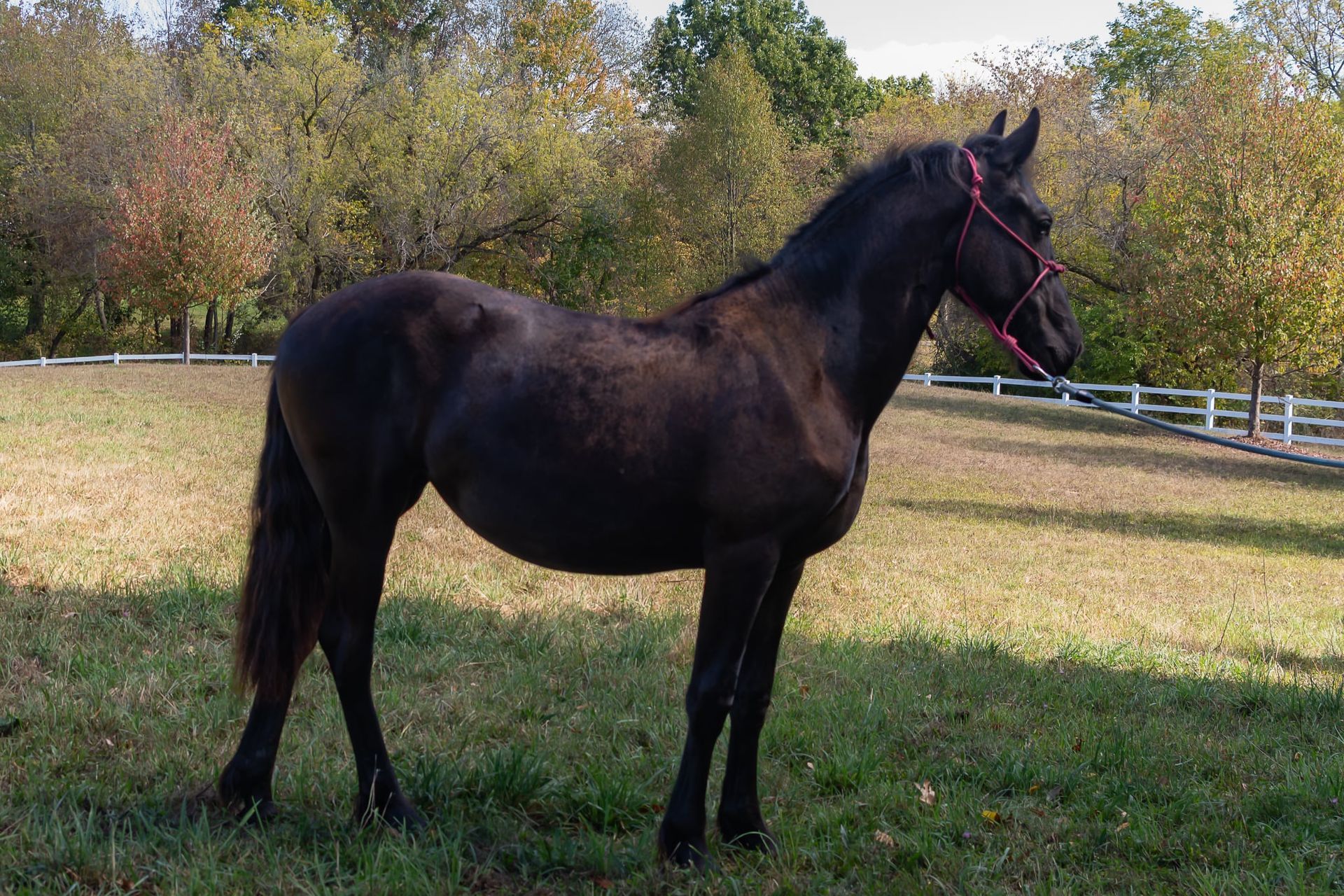 She leads, stands tied, loads easily, and is great for the farrier, vet, and fly spray! Adaptable to both stalled nights and 24/7 turnout, she adjusts effortlessly to new environments.