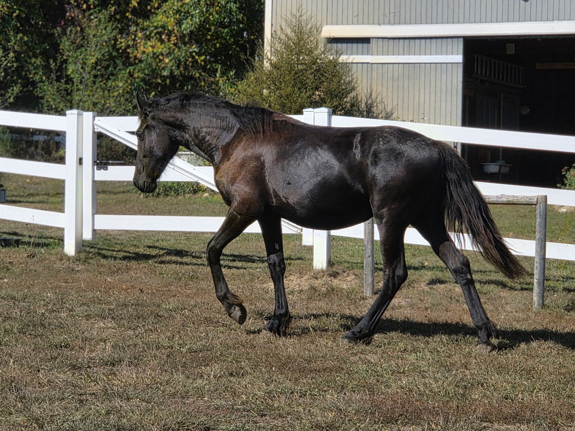 Intelligent and eager to please, she has a trainable mind and a confident, curious personality. This filly genuinely enjoys working with people, making her a standout in temperament and presence.