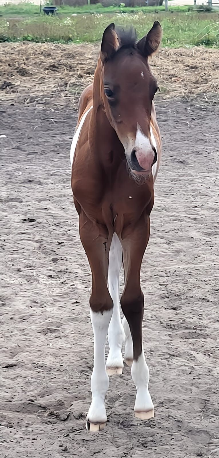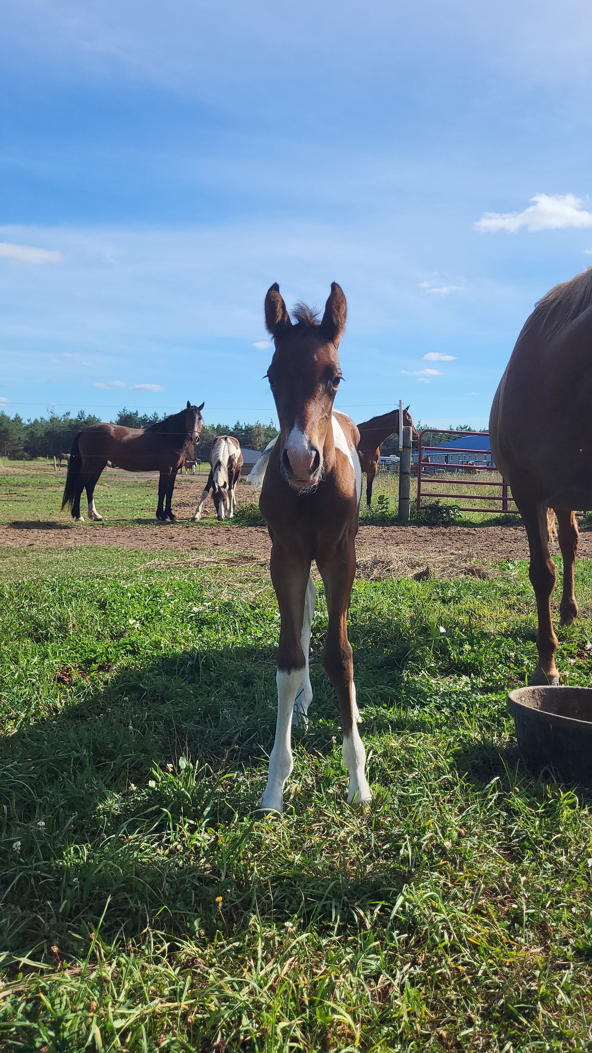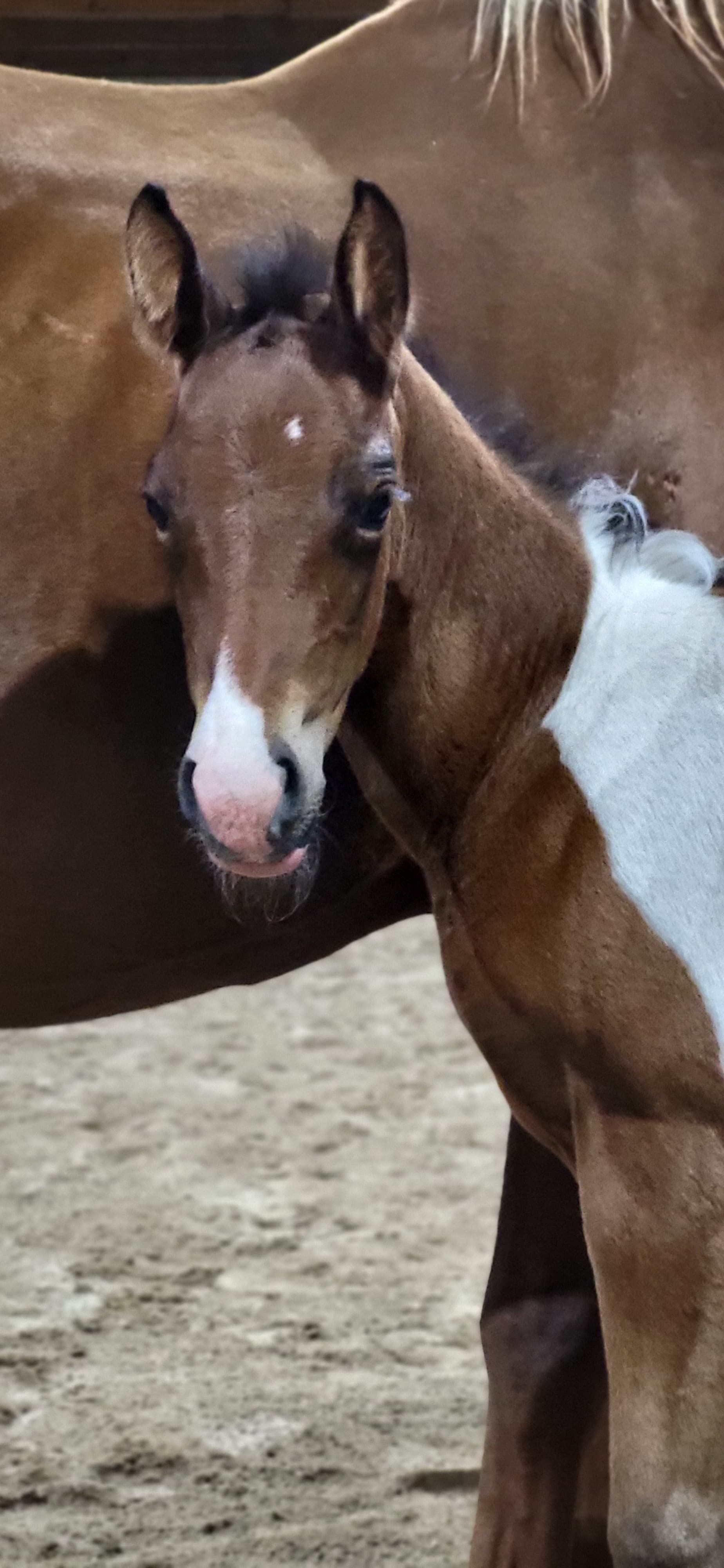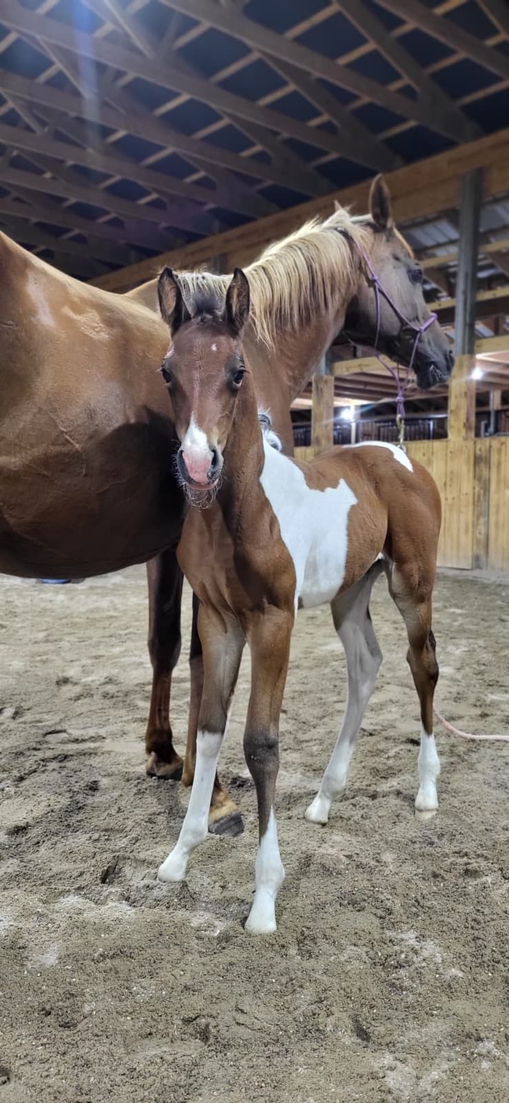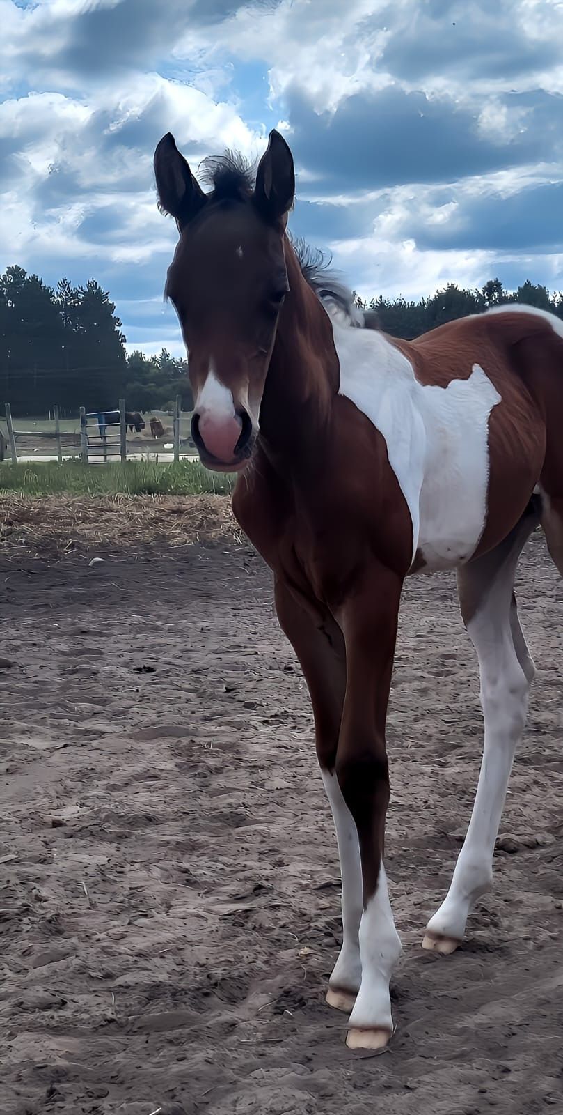 Born on August 16, 2025, she arrived in this world radiating sweetness from the first moment. 🐴❤️ This stunning beauty is a perfect blend of 1/2 Paint and 1/2 National Showhorse (Arabian/Saddlebred).